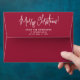 Add a chic modern touch to holiday cards with stylish custom red and white return address envelopes. The greeting on this template is simple to personalise to any wording, such as Merry Christmas, Happy Holidays, Seasons Greetings, or Happy New Year. As an option, change the script typography greeting to your name, and use the rest for the address only. The design features trendy handwritten calligraphy and modern minimalist name and address. Elegant customised envelopes add a beautiful detail to Christmas cards and holiday party invitations.