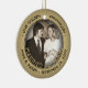 Celebrate a joyful golden 50th wedding anniversary with a custom 2 photo "Married 50 Years" black and gold round ceramic ornament. All text and images on this template are simple to personalize and can be different or the same on front and back. (IMAGE & TEXT DESIGN TIPS: 1) To adjust position of wording, add spaces at beginning or end. 2) To center the photo exactly how you want, crop it into a square shape before uploading to the Zazzle website.) Design features a gold faux foil border, stylish vintage art deco style typography, the couple's names & date, and two pictures of your choice. This unique & modern wedding keepsake adds an elegant touch to Xmas home decorations. Please note that gold is printed color, not metallic foil. Congratulations & Happy Fiftieth Anniversary!