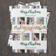 Celebrate the simple joys of the holidays with stylish custom photo collage Christmas wrapping paper sheets. The pictures and all wording on this template are simple to personalise. Change "Merry Christmas" and "Joyful Wishes" to "Happy Holidays, Seasons Greetings," or other text of your choice. An additional line of text can be a family name, to/from personalised names, special delivery from Santa, or it can be deleted. The red, green and white design features 12 square photos, modern brushed script calligraphy and minimalist sans-serif typography. This unique gift wrap adds an elegant touch to Xmas tree home decorations.