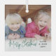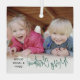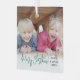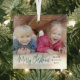 Celebrate the simple joys of the holidays with a script typography photo overlay square glass ornament. The picture and all text on this template are easy to personalise. Customise with any wording, such as Merry Christmas, Happy Holidays, My First Xmas, Best Friends, kids & family names, etc. The festive green, white and black and design features chic trendy handwritten script calligraphy, simple modern minimalist typography names & year, and one photo of your choice. This unique keepsake adds a stylish touch to Xmas home decorations. Merry Christmas!