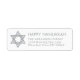 Add the perfect holiday, invitation, or thank you card finishing touch with these elegant white and grey return address labels. All text can easily be customised with any greeting, name, and address. Design features a chic stylish geometric Star of David with simple modern typography. Easy to personalise for many Jewish holidays or occasions, such as Hanukkah, a wedding, bat or bar mitzvah, or funeral.