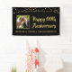 Celebrate ANY year wedding anniversary and welcome party guests with this sign featuring a photograph of the special couple and a border of party string lights in a black and gold colour scheme. The title in a brush script gold font is editable to include the couple's anniversary year (10th, 25th, 40th, etc.). EDITABLE COLOR: The background colour, text and photo frame colours can be changed to coordinate with your party colour theme by clicking on the CUSTOMIZE tab. PHOTO TIP: For fastest/best results, choose a photo with the subject in the middle and/or pre-crop it to a square shape BEFORE uploading and it will fill the photo space perfectly. Contact the designer if you'd like this design modified, on another product or would like coordinating items to complete your party ensemble.