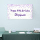 Celebrate any year birthday with this personalised banner with wishes for a HAPPY ##TH BIRTHDAY. Modern, chic design with a purple confetti border and brush script font which can be changed to a different font style or colour to coordinate with your party theme. Contact the designer if you’d like this design modified, on another product or would like coordinating items to complete your party ensemble.