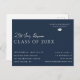 School Reunion Save the Date design, either for High School or can be altered for College. Elegant, classy style. Night blue background. Graduation hat element included. Please personalise text. All text is editable, so this can easily be altered to an invitation or announcement for a graduation event. To have a stationary keepsake of the event, the save the date card can be ordered in print, but also can be bought in digital, downloadable form.