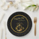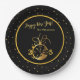 Any Year Happy New Year's Black Gold Clock Paper Plate