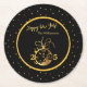 Any Year Happy New Year's Black Gold Clock Round Paper Coaster