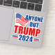 Vote for anyone but Trump in the 2024 election to stay patriotic. Republicans and Democrats need to unite against Donald Trump and vote for Joe Biden so we can keep America safe. American flag on a political laptop sticker with anti Trump message.