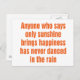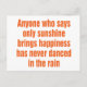 Rainy days may depress some people. For others, it brings new opportunities to dance! Reads "Anyone who says only sunshine brings happiness has never danced in the rain."