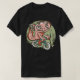 I give wanted to give this a 4 instead of a 5 because these Basic DARK T0shirts run unexpectedly SLIM or Narrow. Which is great if you do not have a potbelly, but I have a paunch. It isn't the shirt's fault that I've got a beer belly. The design and shirt itself is a quality cotton shirt. The color is more of a deep purple, but still a very pretty color. The Basic DARK T-shirts run a bit SLIMMER than the Basic Ts. The neck is a fraction narrower (or seems to be narrower) also. I'm a paunchy middle-aged woman and my neck is 12 inches (31cm) thick and the neckline fell about the same as in the photo of the man, and I had the desire to tug it a bit. So if you're a thick necked man or like loose shirts, be aware these are slimmer shirts. Once I get rid of my lockdown paunch it'll look great. The shirt washed well in cold water with no apparent bleeding. We don't have a dryer, so it hung dry. Did not shrink. Love the colors and the design. The design looks smaller on my shirt than it does on the model on-line. But still, it looks good on the shirt. The printing looks as it does on the model, just the size seems fractionally smaller. Washed garment in cold water, hung dry and design appeared unaffected.