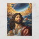 Jesus Christ is among the beautiful mystical celestial bodies which include a huge flower covered crescent moon.