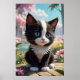 * The Kitty is FLUFFY , and BLACK with White Tuxedo markings art.