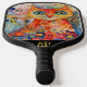 This brilliantly colourful and delightfully bold design features a stunning abstract cat artwork on the front — full of vivid patterns, swirling colours, and soulful energy. On the flip side, a quirky, wide-eyed cat clings to its composure in the face of flying pickleballs. Whether you're a feline fanatic, an art lover, or someone who enjoys a good laugh on the court, this design delivers expressive style and surprise in every swing.