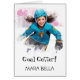 Energetically Enhanced Cute Feisty Little Girl playing hockey on ice. BIRTHDAY CARD