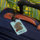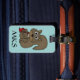 Hilarious cute grey squirrel playing the saxophone cartoon clock design is unique and fun and a great gift idea. He's full of personality. Customise your initials on the front and personal info on the back. Fun colourful design helps to identify luggage quickly.