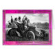 Photography of great Native American Apache warrior chief Geronimo with top hat ,driving an elegant vintage car in black white,pink,fuchsia,purple colours, taken on June 11, 1905 , re-elaborated by Bulgan Lumini. inside of the card ,magic symbol of sacred Morning Star of Pawnee tribe bearer of well-being .