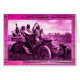 Photography of great Native American Apache warrior chief Geronimo with top hat ,driving an elegant vintage car in black white,pink,fuchsia,purple colours, taken on June 11, 1905 , re-elaborated by Bulgan Lumini. inside of the card ,magic symbol of sacred Morning Star of Pawnee tribe bearer of well-being .