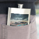 The product is a good size and came exactly as it was pictured. The lid is not attached to the flask, which could be dangerous on drunken nights... The print came out surprisingly well and looks very sharp. Would definitely recommend.