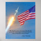 The American flag heralds the flight of Apollo 11, the first Lunar landing mission, with astronauts Neil Armstrong, Michael Collins and Edwin Aldrin on July 16, 1969 from the Kennedy Space Centre. Also included is a quote from President Kennedy's inspirational speech at Rice University “We choose to go to the moon in this decade and do the other things, not because they are easy, but because they are hard."