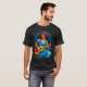 I give wanted to give this a 4 instead of a 5 because these Basic DARK T0shirts run unexpectedly SLIM or Narrow. Which is great if you do not have a potbelly, but I have a paunch. It isn't the shirt's fault that I've got a beer belly. The design and shirt itself is a quality cotton shirt. The color is more of a deep purple, but still a very pretty color. The Basic DARK T-shirts run a bit SLIMMER than the Basic Ts. The neck is a fraction narrower (or seems to be narrower) also. I'm a paunchy middle-aged woman and my neck is 12 inches (31cm) thick and the neckline fell about the same as in the photo of the man, and I had the desire to tug it a bit. So if you're a thick necked man or like loose shirts, be aware these are slimmer shirts. Once I get rid of my lockdown paunch it'll look great. The shirt washed well in cold water with no apparent bleeding. We don't have a dryer, so it hung dry. Did not shrink. Love the colors and the design. The design looks smaller on my shirt than it does on the model on-line. But still, it looks good on the shirt. The printing looks as it does on the model, just the size seems fractionally smaller. Washed garment in cold water, hung dry and design appeared unaffected.