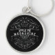 Stylish keychain for moonshine lovers features fictitious Appalachian Apple Pie moonshine label in white/light grey on black background.