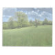A rich green landscape, with a field of tall grass edged with trees under a deep blue sky full of clouds. A gnarled dead tree stands by itself in the middle of the field.
