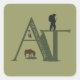 The letters "AT" in olive green are the foundation for this design. Incorporated into the lettering are some of the natural attractions of the Appalachian Trail including the silhouette of a wild pony, wildflowers, the silhouette of a hiker and an extra peak on the "A" to resemble mountains. The phrase "The Appalachian Trail" running along the inside of the wider leg of the "A" completes the design.