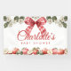 Set the scene for your celebration with this rustic apple baby shower banner. Featuring watercolor apples, white blossoms, and a charming red gingham bow, this personalised backdrop is perfect for photo booths, dessert tables, or gift areas. A festive way to make the “Apple of Our Eye” shower theme truly unforgettable.
