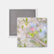 Closeup view of an apple tree in full bloom. Single pink apple flower on a twig against and amidst other flowers of soft pink colour and light blue sky. The impression of purity and beauty. The painting of the Nature. Textured photograpy.