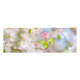 Closeup view of an apple tree in full bloom. Single pink apple flower on a twig against and amidst other flowers of soft pink colour and light blue sky. The impression of purity and beauty. The painting of the Nature. Textured photograpy.
