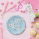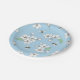 Fresh apple blossom and bumble bee floral design on cornflower blue to celebrate a wedding, rehearsal dinner, baby shower or children's birthday party.