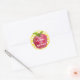 A bright sticker decorated with a red delicious apple hand drawn with ink and watercolor on a yellow checked background with text that can be edited with your personal or business information.