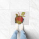 A colour pencil drawing of a red and green apple adorns this doormat!