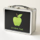 Green apple with leaf icon. Custom background colour. Custom text on both sides.