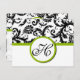 Vintage Modern Black and White Floral Damask Patterns with Apple Green Trim Wedding Invitations. Perfect for Rococo Baroque, Mediaeval Renaissance, Art Deco Art Nouveau, Roaring 20s Gatsby, Victorian Weddings or Elegant Farmhouse Wedding Themes Venues.