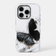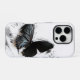 A phone case featuring a design of a butterfly against a white background, with artistic brushstroke elements. The butterfly design is visually striking, combining elegance with a touch of artistic flair. The contrasting colours and textures can attract attention. Butterflies often symbolise transformation, beauty, and freedom. This design can evoke positive emotions and inspire a sense of renewal. The blend of realistic imagery with abstract strokes gives it a unique personality, allowing it to stand out from more conventional designs.