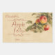 A vintage style label for jams and jellies with an illustration of red and yellow apples on a branch with green leaves, made from an old postcard painting, with brown coloured scrolls and text. The date can be left for writing the date, or change the dotted text to the year you require.