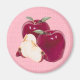 2 Apples with 2 apple slices on a red chequered background are on this magnet. Great for the apple lover.