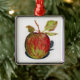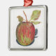 A colour pencil drawing of a red and green apple at the end of apple picking season adorns this ornament!