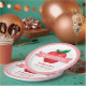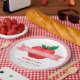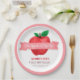 Having a summer or fall themed birthday party? These "apple of my eye" paper plates would make a welcome addition to your party. Bright and colourful hand drawn watercolor apple with soft pink banner and "The Apple of My Eye" in script font. Fun white polka dots against a pink background are sprinkled around the edge. Text can easily be edited to fit your special occasion.