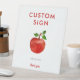 Planning a fall apple of our eye themed baby shower? Add the perfect signage to your shower with a red apple custom sign baby shower signage.