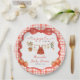 Add a touch of rustic charm to your celebration with this “Apple of Our Eye” baby shower plates — a perfect match to your fall-themed party décor. Featuring a red gingham plaid background, a scalloped white frame, and a sweet red bow accent, this napkin beautifully captures the warmth and coziness of an autumn baby shower.