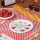 Rustic apple theme baby shower plate featuring illustration of red apples painted with watercolor.