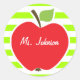 Apple on Electric Lime Green Horizontal Stripes Classic Round Sticker