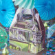 Original Acrylic Painting of Misloc, Hungary by well-seasoned New York City Artist, Gaye Elise Beda