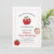 Apple Pink Bow preppy Coquette 1st birthday Invitation