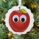 Apple, red fruit with googly eyes - Personalised Tree Decoration Card