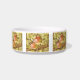 This is a heavy, durable bowl decorated with Tibbies of many colors, the perfect size for hungry/thirsty Tibs. The design is interesting and printing clear.