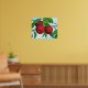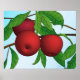 "Apples on a Branch" print with border - mixed media graphic design, digitally enhanced vector drawing of ripe apples on a branch with green leaves