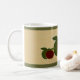 suttle foe finish background, thin borders of deep green with painted dimensional apples across the front really embelish this mug with style. look for other mix and match products. textured dimensional art and design by kaps images