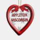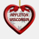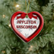 A graphic design of snowflakes in a 3D look red frame on a heart shape Appleton Wisconsin Christmas ornament. The ornament has text templates for your personalisation. ©2012charmainepaulson